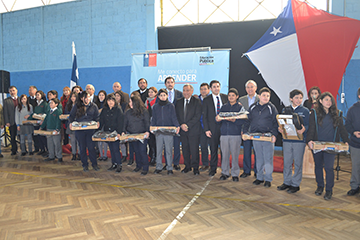 En el gimnasio del Liceo República Argentina de Coyhaique el Intendente Jorge Calderón Nuñez encabezó hoy martes 22 el lanzamiento del programa “Me Conecto para aprender” en la regiónde Aysén con la primera entrega de computadores con recursos educativos y conectividad a niños y niñas que cursan 7º básico en escuelas y liceos públicos.
